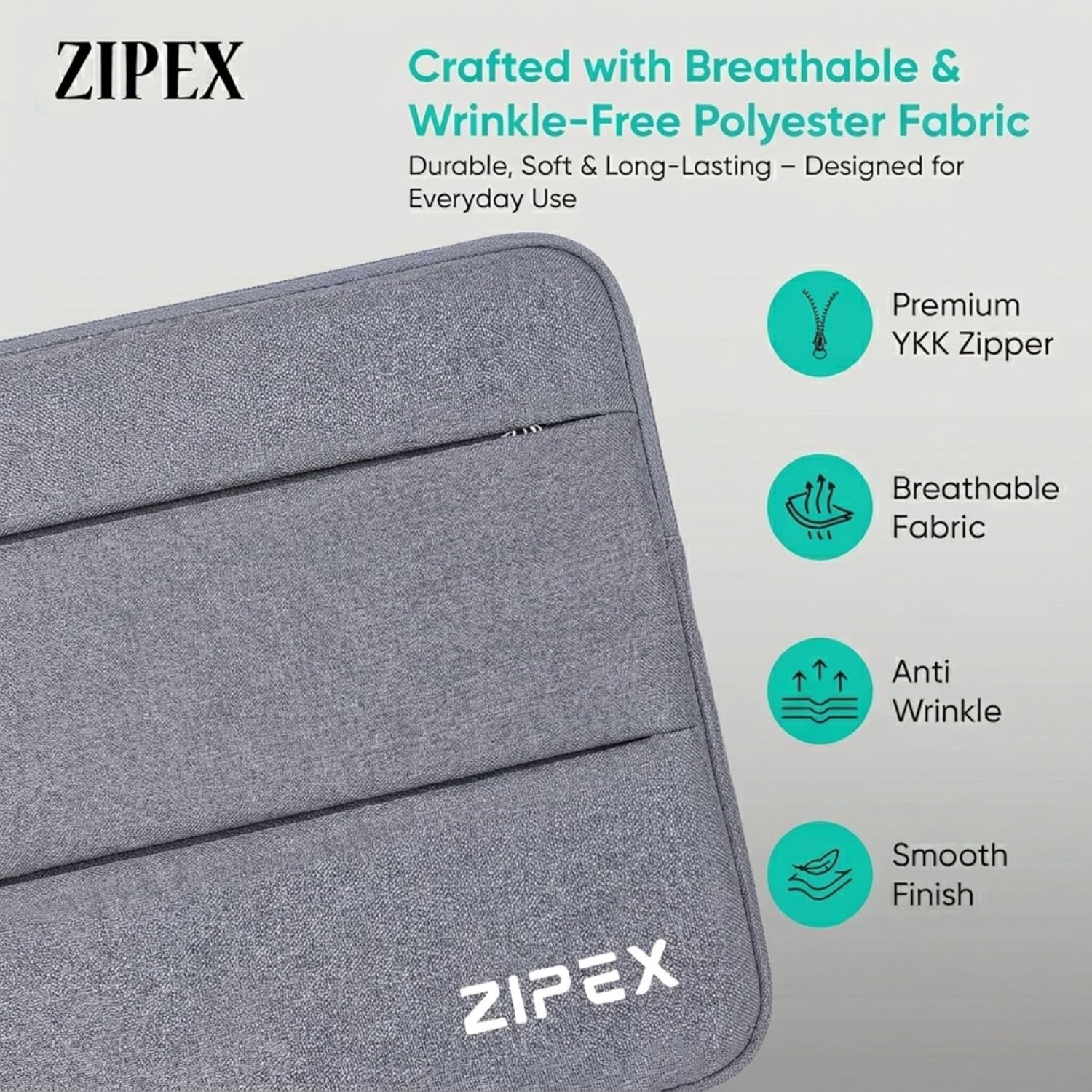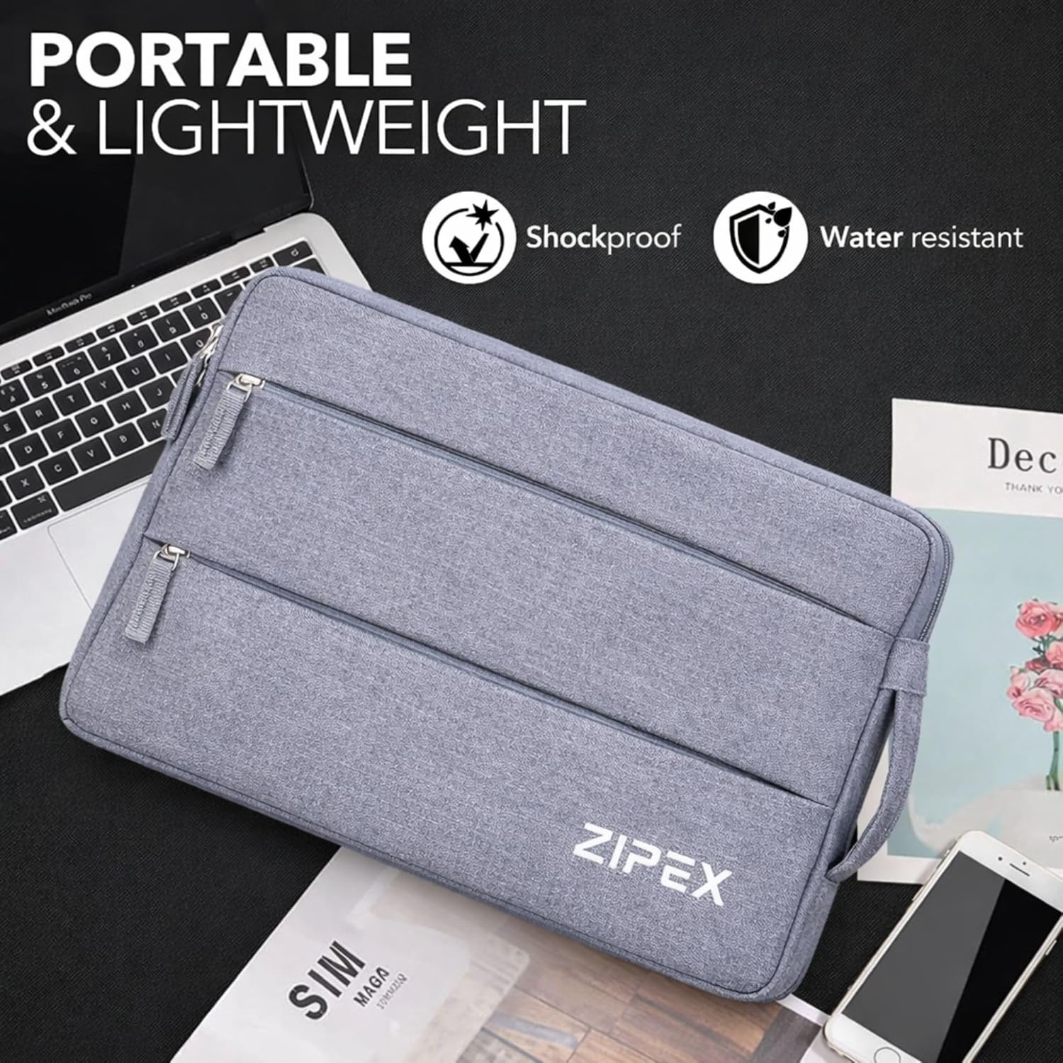 Water-resistant, shockproof ZIPEX sleeve designed to keep your MacBook, Dell, HP, Lenovo & ASUS laptops safe and your essentials perfectly organized for work, travel, and daily use.