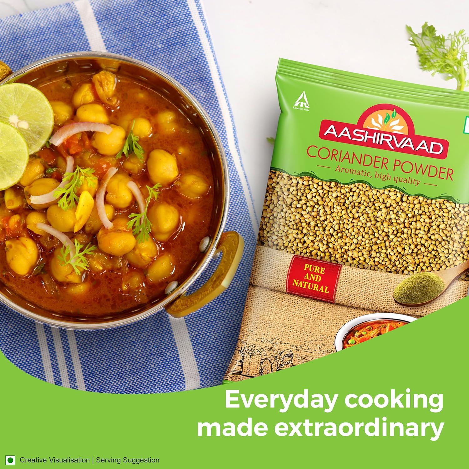 NO ADDED COLOUR & FLAVOUR: Aashirvaad Coriander Powder adds an authentic aroma and flavour to all your dishes