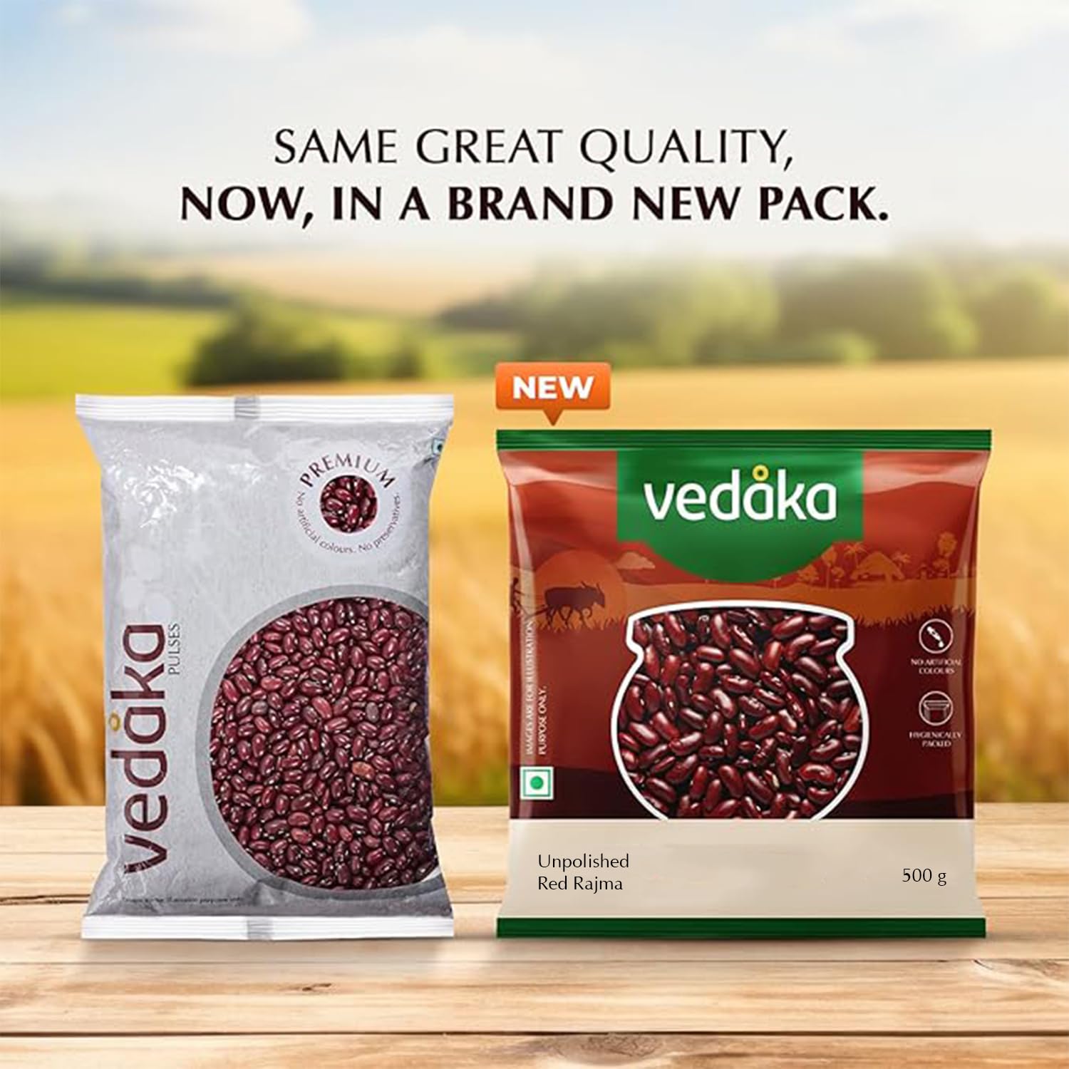 Rediscover the comfort of homemade Rajma Chawal with Vedaka’s Unpolished Red Rajma. These deep-red kidney beans are unprocessed, retaining their naturalrobust flavor. Soak them overnight for a creamy texture that pairs perfectly with steamed rice or roti. Naturally Packed with plant-based protein, they’re a guilt-free addition to soups, salads, and curries.