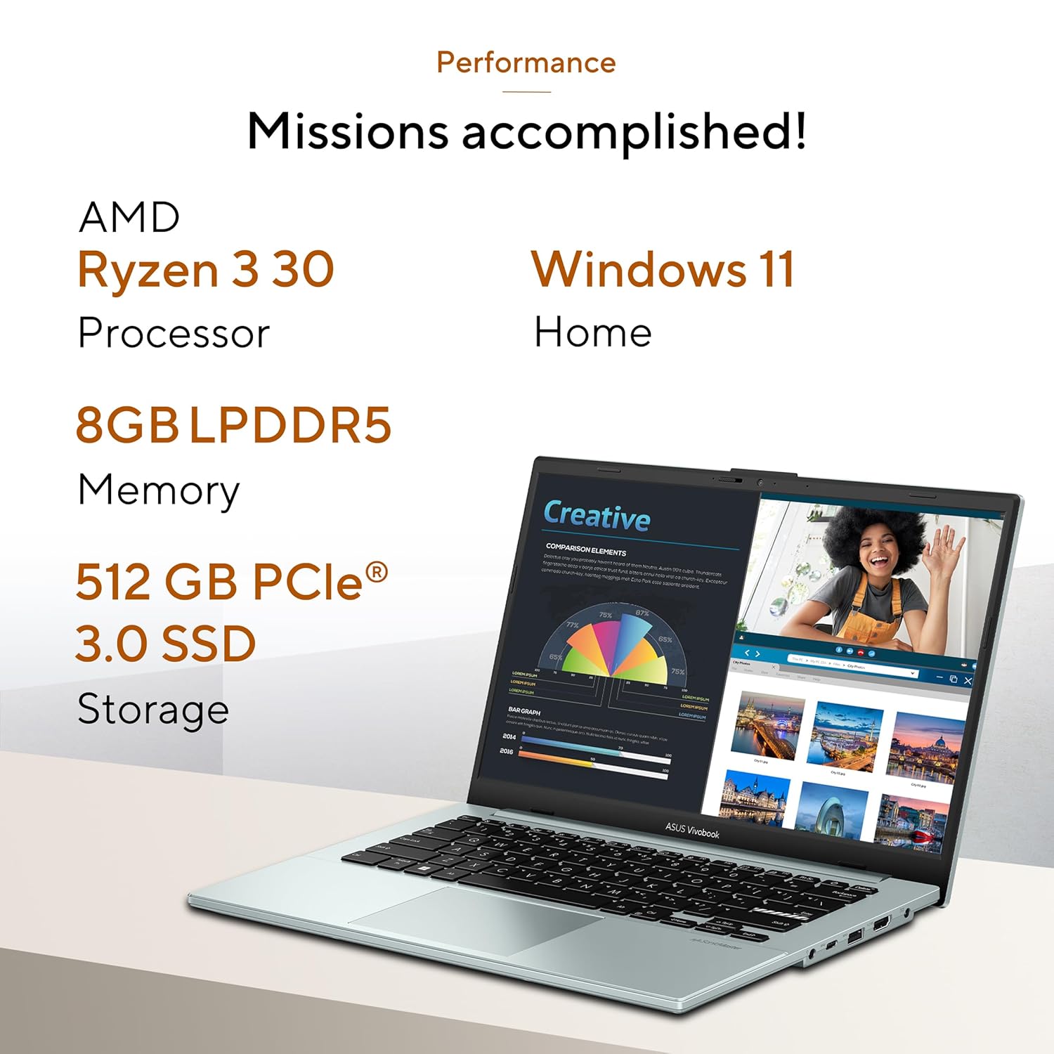 Processor, Memory & Storage : AMD Ryzen 3 30 Processor 2.4GHz (6MB Cache, up to 4.1GHz, 4 cores, 8 Threads) | Memory : LPDDR5 8GB RAM | Storage : 512GB M.2 NVMe PCIe 3.0 SSD + 100GB Cloud Storage with Microsoft 365 Basic for 1 Year.