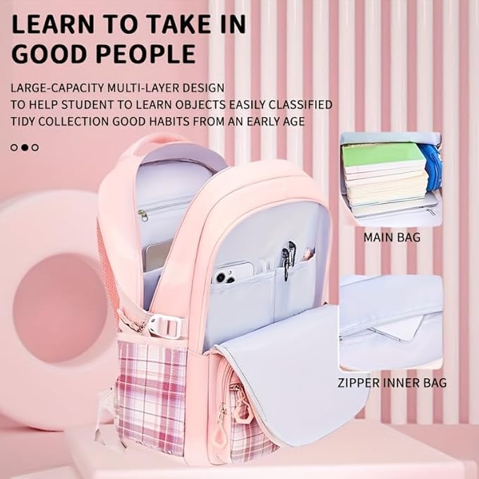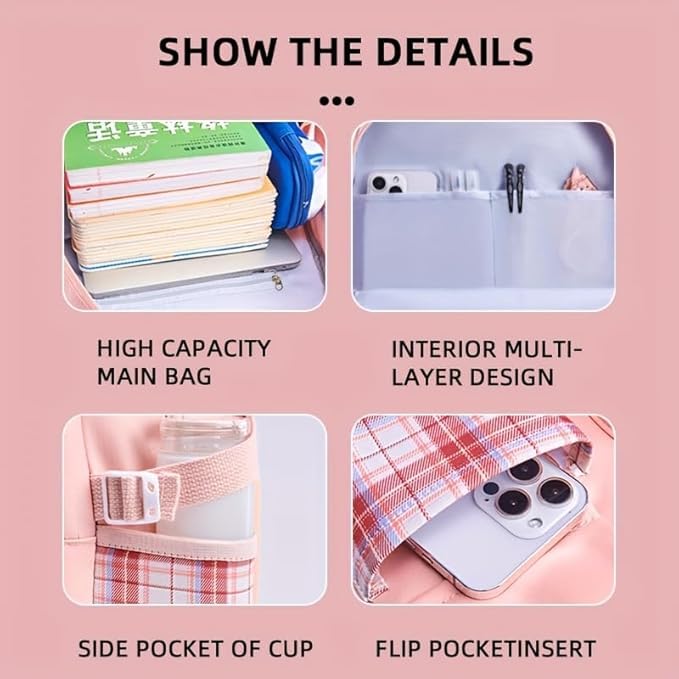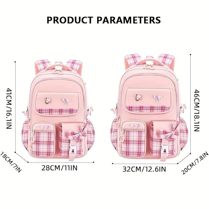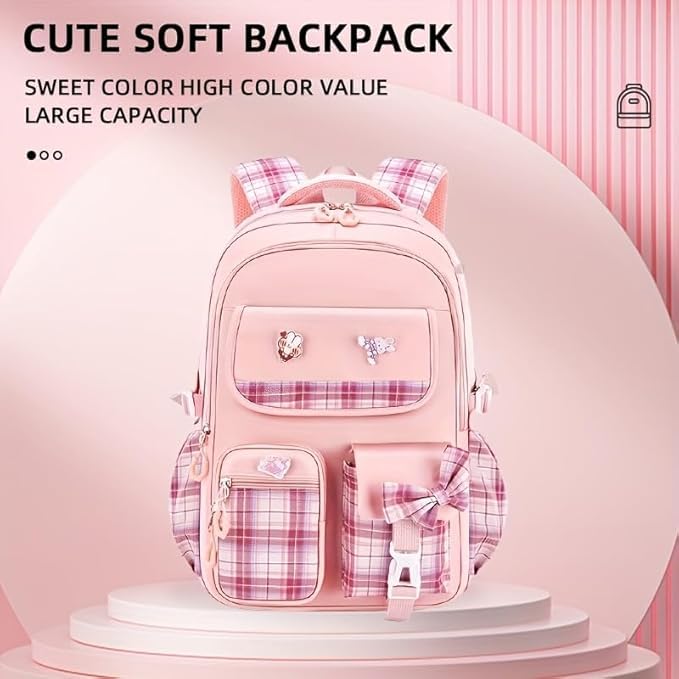 Upgrade your daily carry today. Click ‘Add to Cart’ now! With its large 18-inch size, this backpack provides plenty of room to carry your essential items comfortably. The main compartment is spacious enough to store books, notebooks, folders, and other academic materials. Students can easily organize their daily study materials without worrying about limited space. The roomy design makes it suitable for carrying multiple items while maintaining a neat and organized interior. Whether you are heading to school, college lectures, or coaching classes, this backpack provides the space you need to stay organized throughout the day. Laptop Friendly Design The backpack is designed to accommodate laptops and tablets, making it suitable for college students and working individuals as well. You can safely carry your laptop along with books and other accessories in the same bag. This makes the backpack a practical choice for: College students carrying laptops Online classes or digital learning Office work essentials Study and travel needs The structured design helps protect electronic devices while keeping them secure during transportation. Extra Zipper Pouch for Better Organization This backpack comes with a convenient zipper pouch, providing extra storage space for small items. The pouch can be used to store items such as: Pens and pencils Earphones or chargers Cosmetics or makeup items Keys and small accessories Stationery supplies Having an additional pouch helps keep your belongings organized and easy to access whenever needed. Comfortable Shoulder Straps for Easy Carrying Carrying heavy bags throughout the day can be tiring, which is why this backpack features comfortable adjustable shoulder straps. These straps help distribute weight evenly across the shoulders, reducing strain during long hours of use. The adjustable design allows users to customize the strap length according to their comfort level. Whether you are walking to school, commuting to college, or traveling, the backpack remains comfortable to carry. Durable Material for Long-Lasting Use The DRAYA DEAL’S Cute Bow Cartoon School Bag is made using durable materials that are designed to withstand daily use. The fabric is strong enough to handle books, gadgets, and personal items without tearing easily. This durable construction ensures that the bag remains reliable even with regular usage. The strong stitching and quality zippers add to the overall longevity of the backpack. Students and travelers can rely on this backpack as a long-lasting companion for their daily activities. Smooth Zipper Closure for Secure Storage The backpack is equipped with high-quality zipper closures that allow smooth opening and closing of compartments. The strong zippers help keep your belongings secure and prevent items from falling out. This feature is especially useful when carrying important items like laptops, notebooks, or personal accessories. Multipurpose Backpack for Everyday Use This stylish backpack is designed for multiple uses, making it a versatile choice for different situations. You can use it for: School or college classes Tuition and coaching institutes Daily commuting Travel and short trips Shopping or casual outings Carrying laptops and study materials Because of its fashionable design and practical storage capacity, the backpack easily adapts to different lifestyles and needs. Lightweight and Travel Friendly Despite its spacious design, the backpack remains lightweight and easy to carry. This makes it perfect for students who need a bag that is comfortable for everyday use. Its compact yet roomy design also makes it suitable for travel. You can carry essentials like books, tablets, snacks, water bottles, and personal accessories without feeling weighed down. Trendy Gift Option for Girls and Students The cute and fashionable design makes this backpack an excellent gift choice for girls, teenagers, and students. It is suitable for various occasions such as: Birthday gifts Back-to-school gifts College admission gifts Festival presents Surprise gifts for friends or family Its attractive design and useful features make it a thoughtful and practical gift option. Why Choose DRAYA DEAL’S Cute Bow Cartoon School Bag? There are many reasons why this backpack stands out as a great everyday bag: Cute bow cartoon aesthetic design Trendy pink plaid style Spacious 18-inch storage capacity Laptop-friendly compartment Extra zipper pouch for accessories Comfortable adjustable shoulder straps Durable material for long-term use Smooth zipper closure for security Lightweight and travel-friendly Perfect for school, college, and tuition Perfect Combination of Style and Practicality The DRAYA DEAL’S Cute Bow Cartoon School Bag perfectly blends fashion with functionality. It offers enough storage for books and gadgets while maintaining a trendy and youthful appearance. Students and young women who want a bag that looks stylish while also being practical for everyday use will find this backpack to be an excellent choice. With its charming design, spacious interior, and comfortable carrying features, this backpack is designed to make your daily routine easier and more stylish.