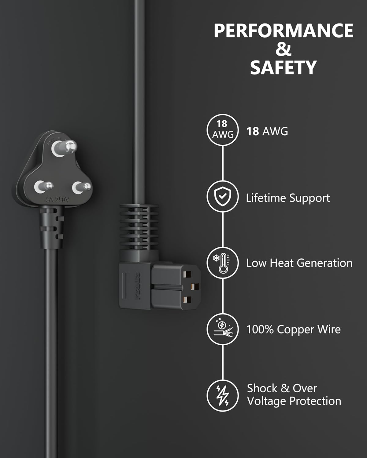 FEDUS 90 Degree Computer Monitor Replacement Power Cord Black