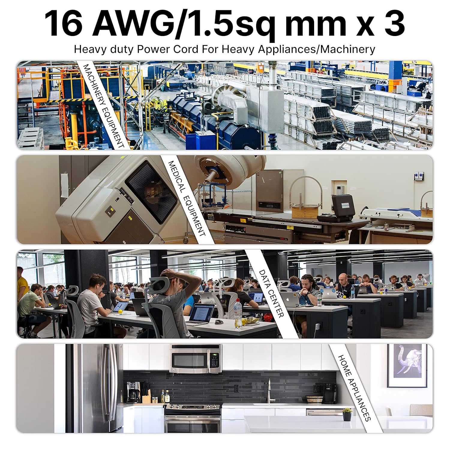▶HEAVY DUTY EXTENSION CABLE – This 9.8ft (3M) 16AWG universal power cord with 16a Indian plug to IEC 13 connectors is suitable for servers or other high-powered equipment | Indoor use | Rated to carry 250V at 16A, Thick 16 AWG wire gauge manages high power levels required for larger equipment.