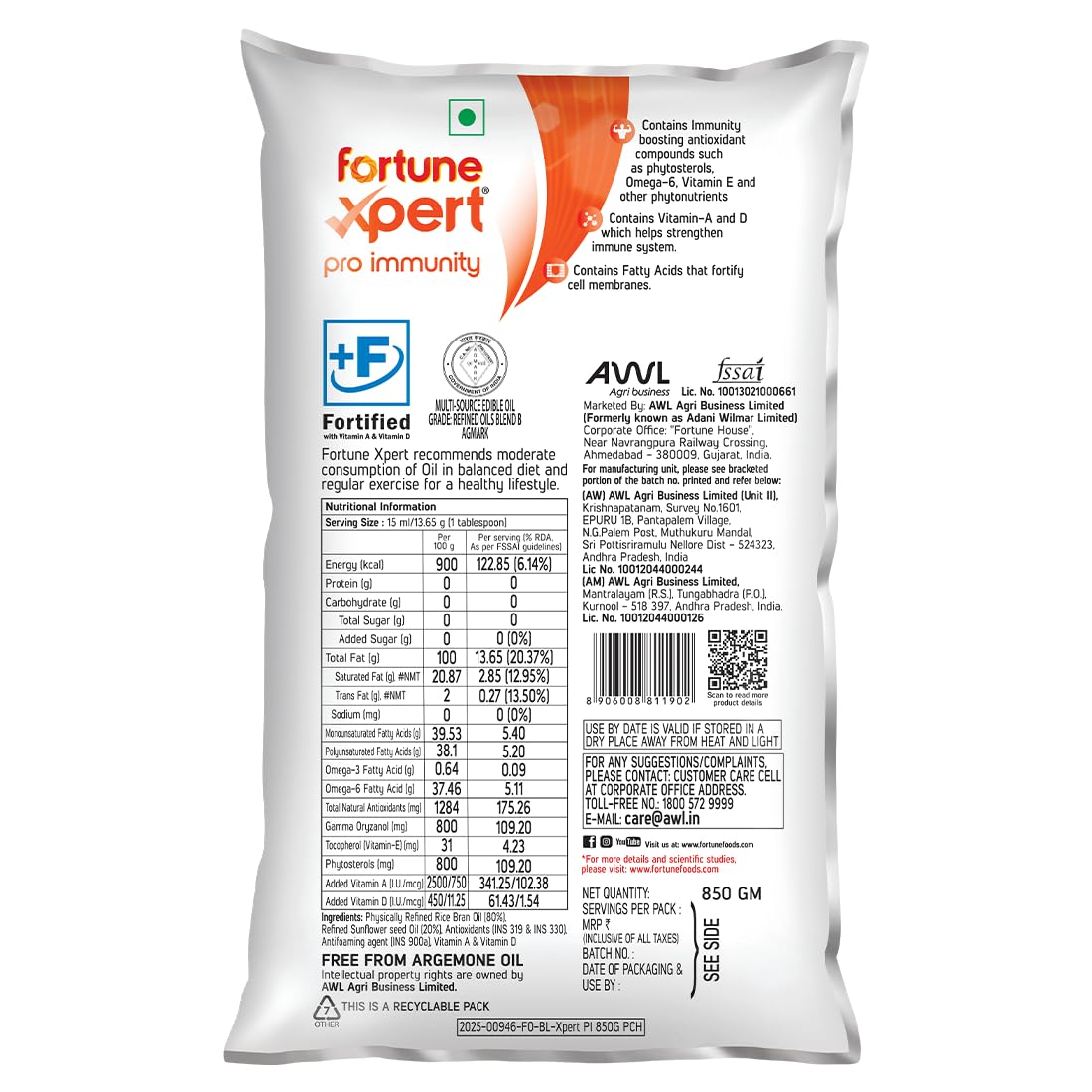 – Blended Cooking Oil: The Fortune Xpert Pro Immunity Oil is a blend of 70% refined rice bran oil & 30% refined sunflower oil, offering a perfect combination of nutrition and taste.