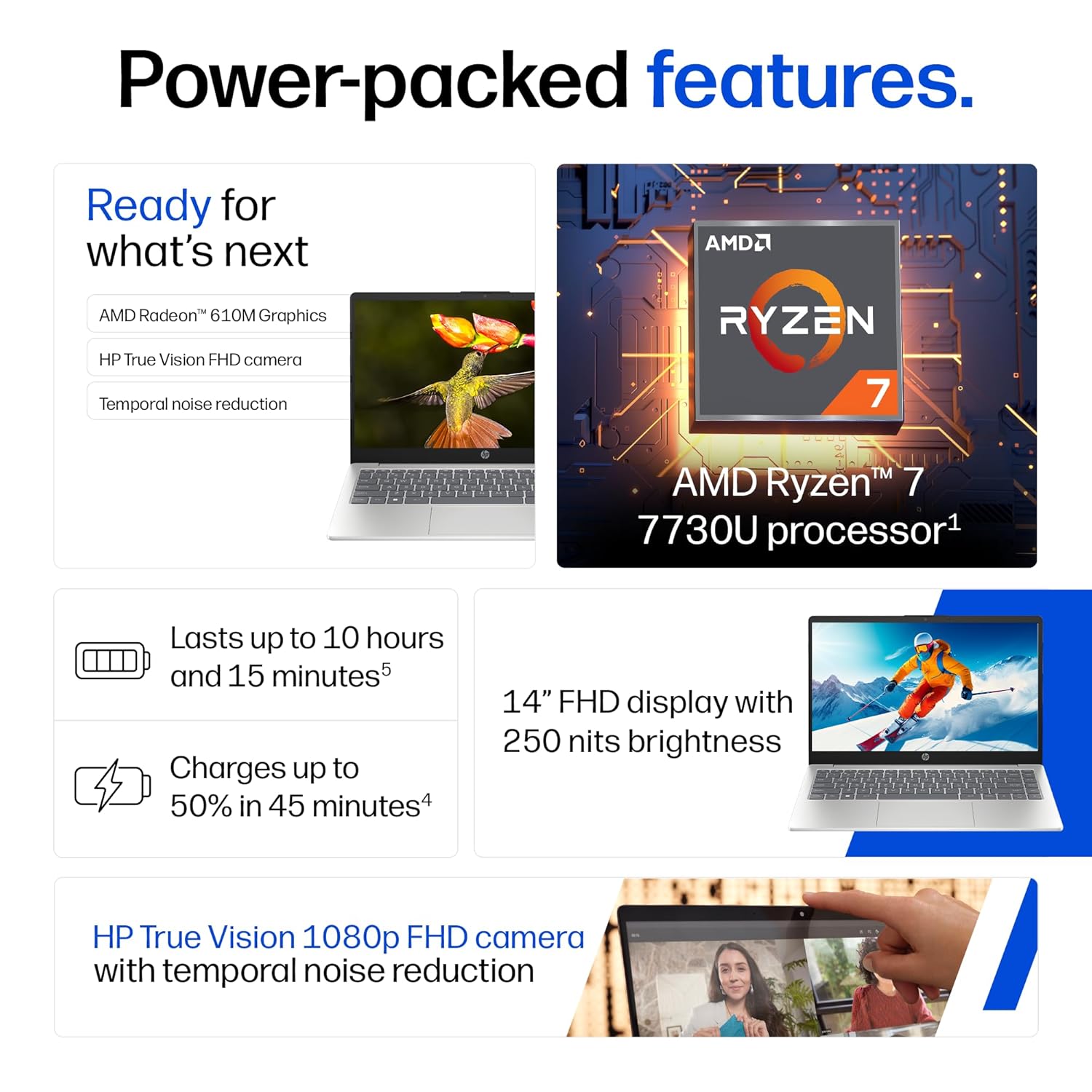 Display & Graphics: 35.6 cm (14″) diagonal, FHD (1920 x 1080), micro-edge, anti-glare, 250 nits, 45% NTSC| Graphics: AMD Radeon 610M Graphics