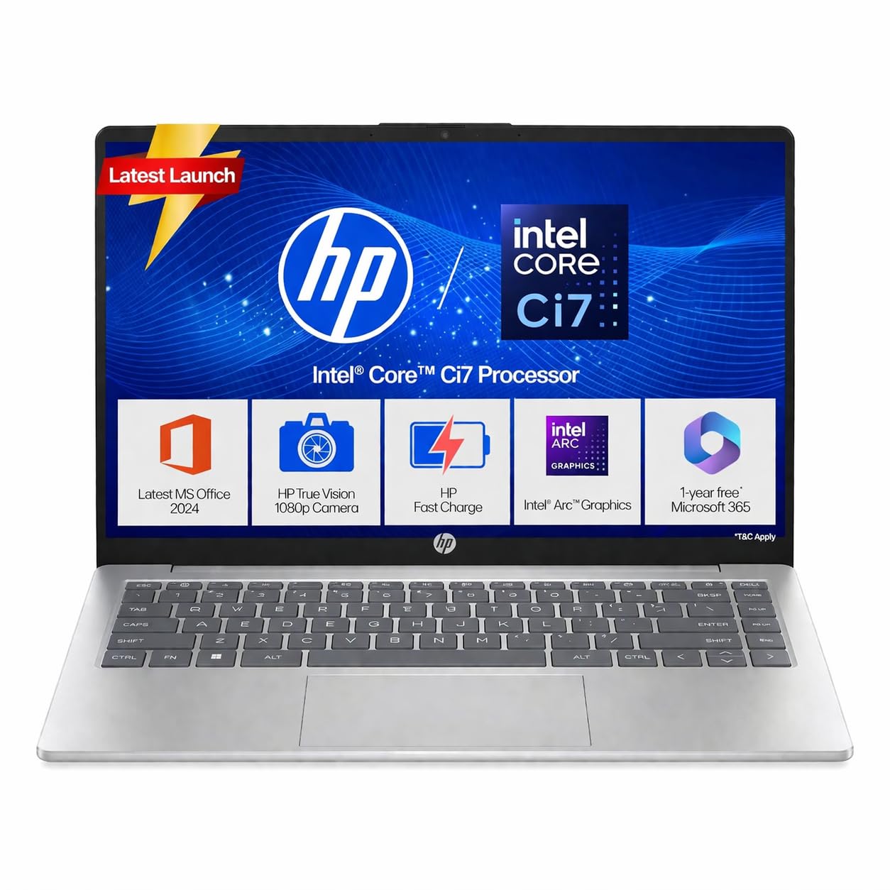 HP 14, Intel Core 13th Generation Intel Core i7-1355U (16GB DDR4, 512GB SSD), Micro-Edge, Anti-Glare, FHD, 14”/35.6cm, Win11, M365* Office24, Silver, 1.4kg, EP0159TU, FHD Camera, Backlit Laptop
