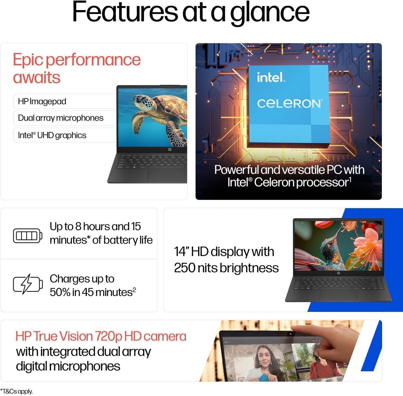 HP 14s Intel Celeron Dual Core N4500 Laptop (8GB/512GB SSD/Win 11) 14.0″ HD Display, MSO 24, Black, 1.46kg, DQ3149TU Thin and Light Business Laptop
