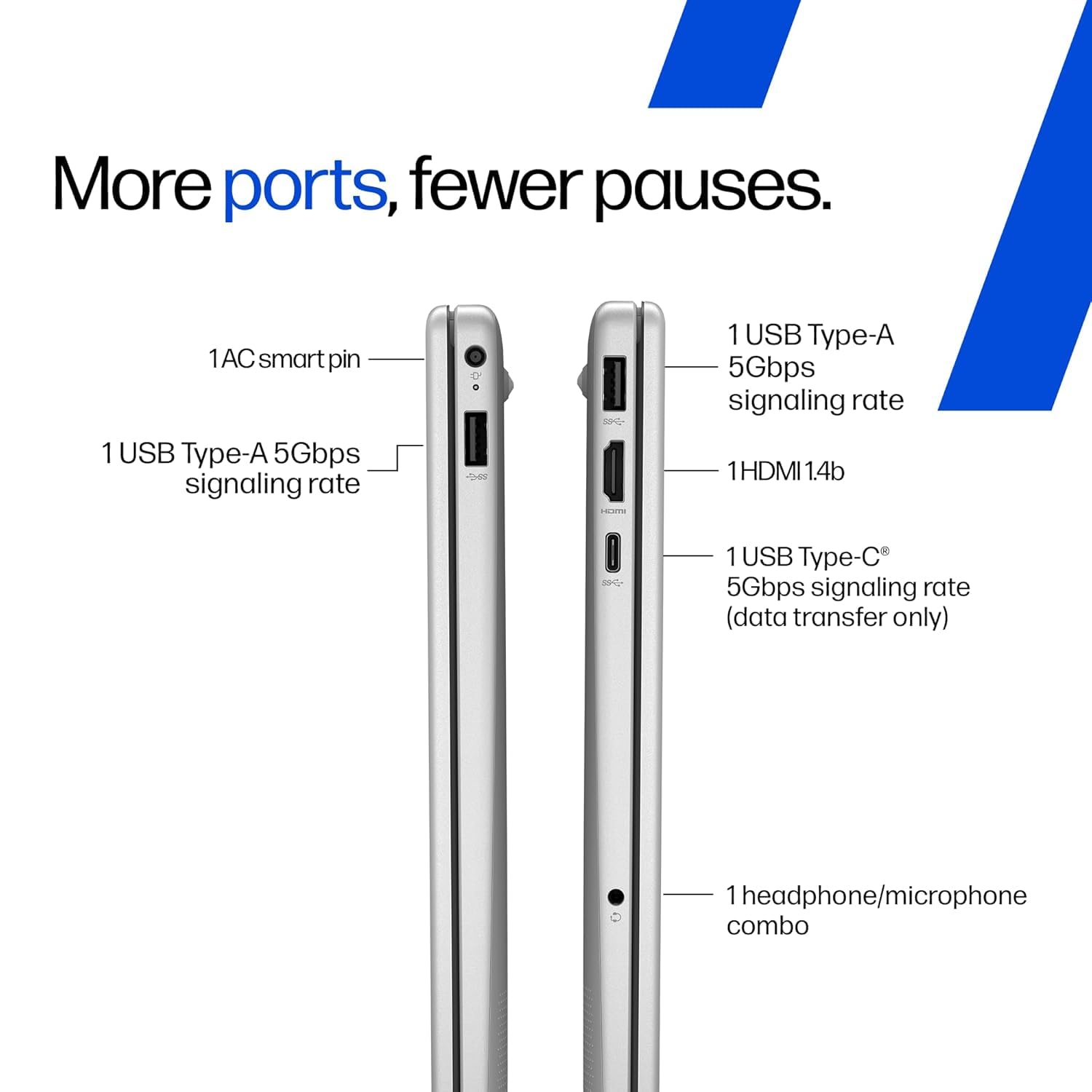 【Ports & Connectivity】: 1 USB Type-C 5Gbps signaling rate (supports data transfer only and does not support charging or external monitors); 2 USB Type-A 5Gbps signaling rate; 1 AC smart pin; 1 HDMI 1.4b; 1 headphone/microphone combo| Connectivity: Realtek Wi-Fi 6 (2×2) and Bluetooth 5.4 wireless card