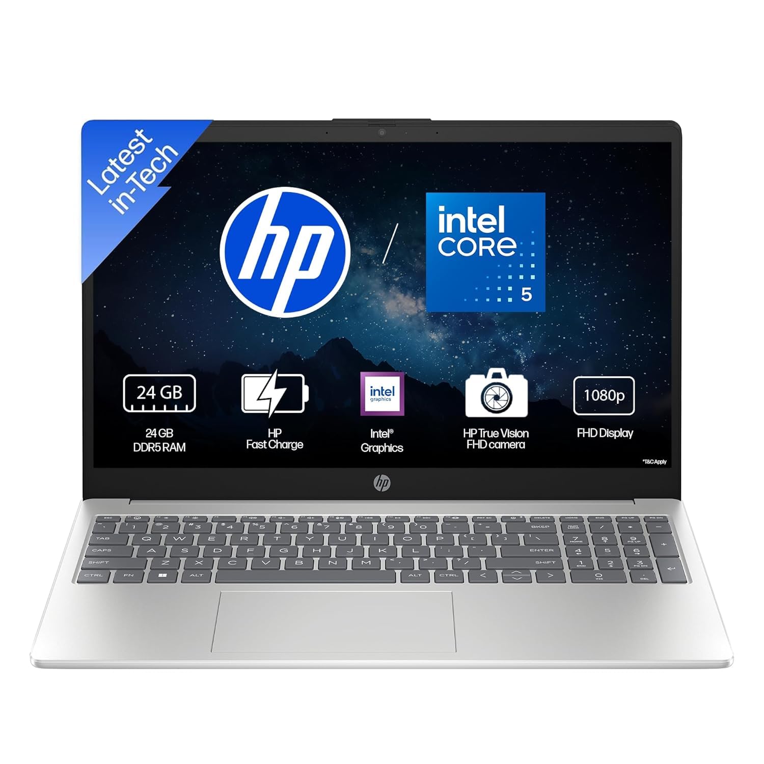 HP 15 Laptop, Intel (14th Gen) Core 5 120U (24GB DDR5, 512GB SSD), Micro-Edge, Anti-Glare, 15.6”/39.6cm, Win11, M365* Office24, Silver, 1.59kg, fd0262TU, FHD Camera, Backlit, Dual Speakers