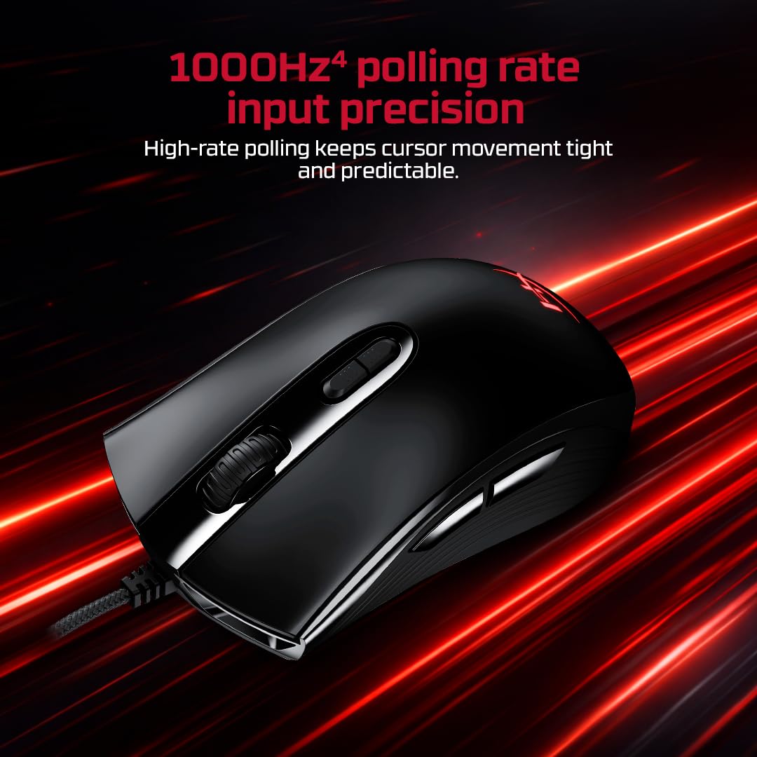 HyperX Pulsefire Core RGB USB Gaming Mouse, Up to 6200 DPI, Pixart 3327 Optical Sensor, 87gm Lightweight, 20Mn Clicks, 7 Programmable Buttons, 1K Hz Polling Rate, 24 Months Warranty – Black [4P4F8AA]