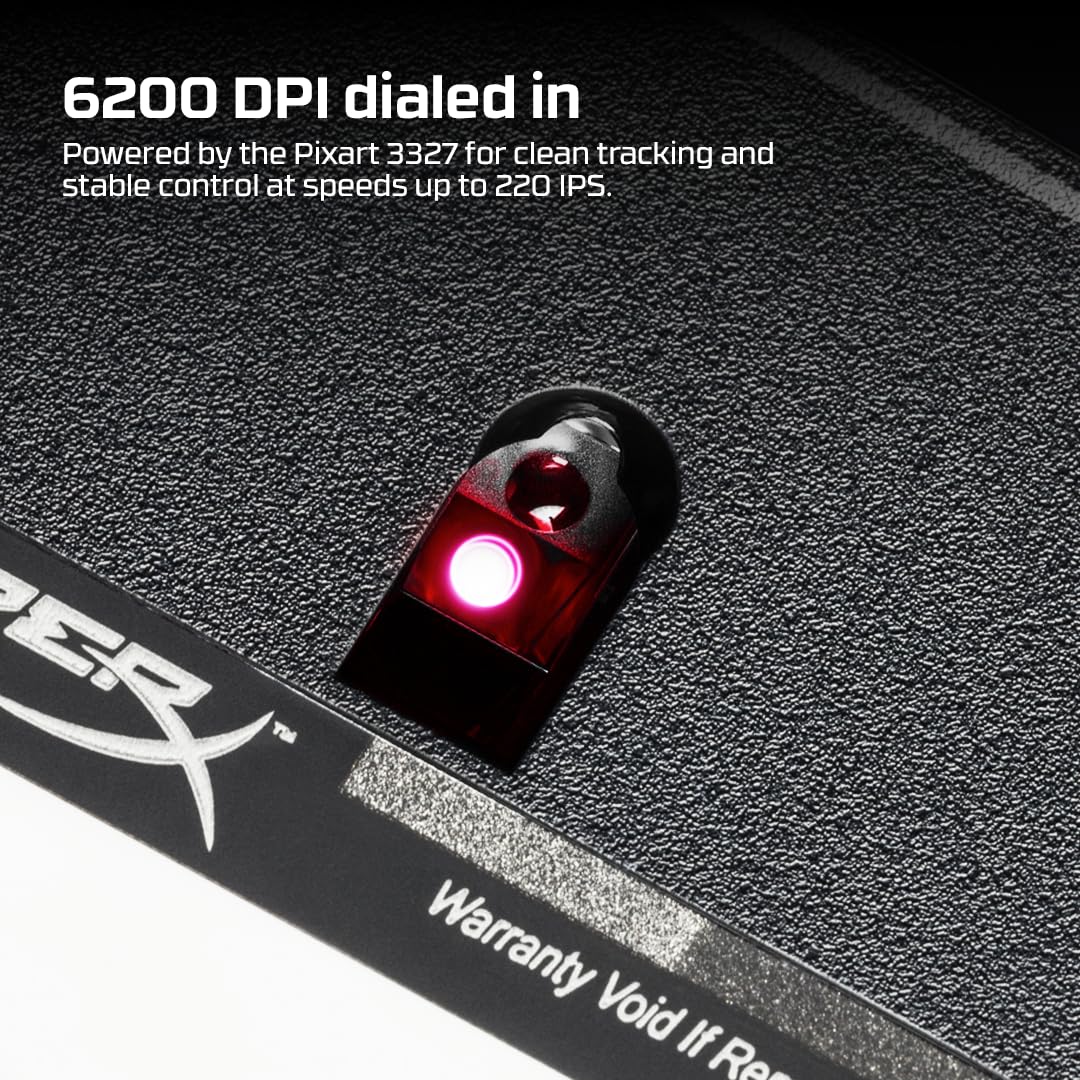 [Pixart 3327 optical sensor] : The solid Pixart 3327 sensor provides precise tracking without hardware acceleration and supports native DPI settings up to 6200.