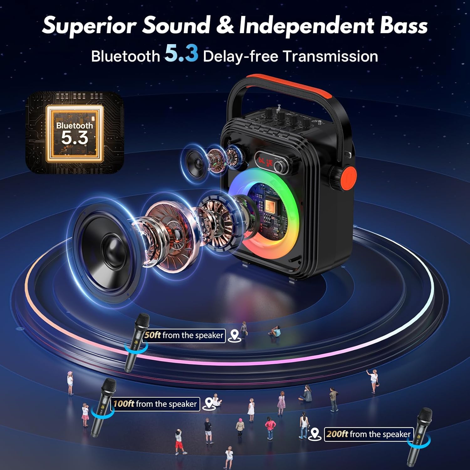 【Spectacular Light Display】: Outshines the competition with its captivating and vibrant light ring. This dynamic visual feature adds an electrifying ambiance to your entertainment, creating an unforgettable atmosphere for your gatherings.