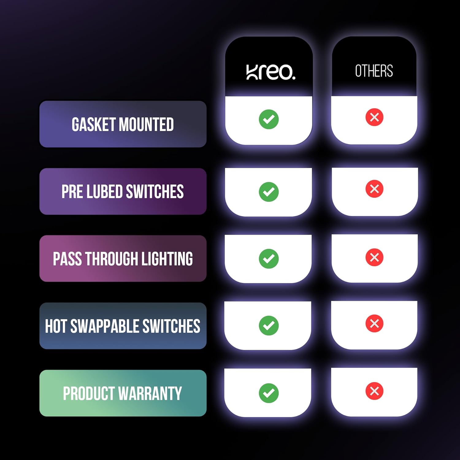 🎯 Pre-Lubed Kreo Linear Switches – In this Kreo Gaming Keyboard Experience smooth, rattle-free typing with Kreo Linear switches. Pre-lubed for quieter and softer presses, these switches deliver a consistent keystroke ideal for gaming and fast typing.