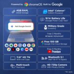 Lenovo Chromebook 11″: Compact, Durable, and Built for Fun In today’s fast-paced world, having a reliable device that’s both portable and powerful is essential, especially for families who are always on the move. The Lenovo Chromebook 11″ perfectly combines these qualities with a design that is not only compact and durable but also engineered to meet the demands of modern-day family adventures. Whether you’re heading out for a road trip, a weekend getaway, or simply need a dependable device for daily use, the Lenovo Chromebook 11″ ensures that you stay connected, entertained, and productive throughout the day. ### Power and Performance That Lasts All Day When it comes to choosing a Chromebook, performance is a critical consideration, and the Lenovo Chromebook 11″ does not disappoint. Equipped with an Intel® Celeron® N4500 processor, this device provides the right balance of power and efficiency for both everyday tasks and light entertainment. Whether you’re browsing the web, writing emails, or working on documents, the Lenovo Chromebook 11″ ensures smooth performance with minimal lag. The Celeron® processor is built to handle a range of tasks with ease, making it an excellent choice for parents who need a reliable device for their day-to-day activities. One of the standout features of this Chromebook is its impressive battery life. With over 11 hours of battery life*, the Lenovo Chromebook 11″ is engineered to keep you powered throughout the day, making it perfect for those who need a device that can keep up with their busy schedules. Whether you’re working remotely, running errands, or on the go with your family, you won’t have to worry about constantly searching for an outlet. And, when it’s time to recharge, the rapid charging feature ensures you’re back in action in no time. In just an hour, the Chromebook can charge up to 80%, allowing you to quickly get back to work, play, or entertainment without missing a beat. Additionally, the device’s Intel® UHD graphics ensure that you can enjoy smooth video streaming, light gaming, and other multimedia activities with ease. Whether your children are watching their favorite shows or you’re relaxing with a movie, the visuals are crisp and clear, bringing your entertainment to life. ### Built Tough for Family Adventures The Lenovo Chromebook 11″ is designed with families in mind. With its compact 11.6″ anti-glare display, it is both easy to carry around and perfect for outdoor adventures. The Chromebook’s slim profile means that it can be easily slipped into a bag or backpack without taking up much space, making it highly portable for busy families who are always on the go. The device weighs just 1.21 kg, making it lightweight enough for children to carry or use on their own without straining themselves. Its manageable size makes it a great option for family trips, whether you’re taking a flight, driving cross-country, or simply hanging out at the park. The build quality of the Lenovo Chromebook 11″ is designed to withstand the rigors of daily life and the bumps and tumbles that are often inevitable when you have children around. The reinforced maca blue chassis is tough enough to withstand accidental drops and scrapes, ensuring that the Chromebook remains in good condition, even during hectic family outings. You won’t have to worry about your device getting damaged when your kids are handling it or when it’s stashed in your bag alongside other items. This rugged construction makes the Chromebook ideal for parents who need a dependable and durable device that can endure the demands of family life. ### Entertainment on the Go, Family-Approved Keeping your kids entertained during long car rides, flights, or waiting periods can sometimes be a challenge, but the Lenovo Chromebook 11″ makes it easy. Its 11.6″ anti-glare display ensures that your little ones can enjoy their favorite videos, shows, and movies with ease, even under bright sunlight or indoor lighting. The anti-glare technology reduces eye strain, making it more comfortable for prolonged viewing. Whether it’s a long road trip or a rainy afternoon at home, the Chromebook’s display is bright and vibrant enough to keep your children engaged, providing them with an enjoyable experience wherever you are. Along with the display, the dual stereo speakers with HD sound make listening to music, watching videos, and joining video calls an immersive experience. The sound quality is clear and crisp, which is perfect for video calls with loved ones or for streaming entertainment on the go. The audio is designed to fill the room, ensuring that everyone can enjoy the experience, whether they’re watching a family movie together or enjoying a solo session of music or a podcast. In addition to its multimedia capabilities, the Chromebook is also great for educational use. With access to Google Play Store and Chrome OS apps, kids can explore learning resources, play educational games, and even attend virtual classes, all on a single device. This makes the Lenovo Chromebook 11″ a versatile tool for both entertainment and learning, giving families the flexibility to balance fun and education effortlessly. ### Next-Gen Wi-Fi and Future-Proof Bluetooth® Connectivity In today’s digital age, staying connected is more important than ever. The Lenovo Chromebook 11″ comes equipped with Wi-Fi 6, which is the latest generation of Wi-Fi technology. Wi-Fi 6 offers faster speeds, better reliability, and greater efficiency compared to previous Wi-Fi standards. This means that whether you’re streaming movies, browsing the web, or working on important tasks, the Chromebook ensures that your connection is stable and fast. The improved performance of Wi-Fi 6 is particularly beneficial in crowded environments with many connected devices, such as busy households or public spaces. Additionally, the Chromebook features Bluetooth® 5.1, which ensures seamless and