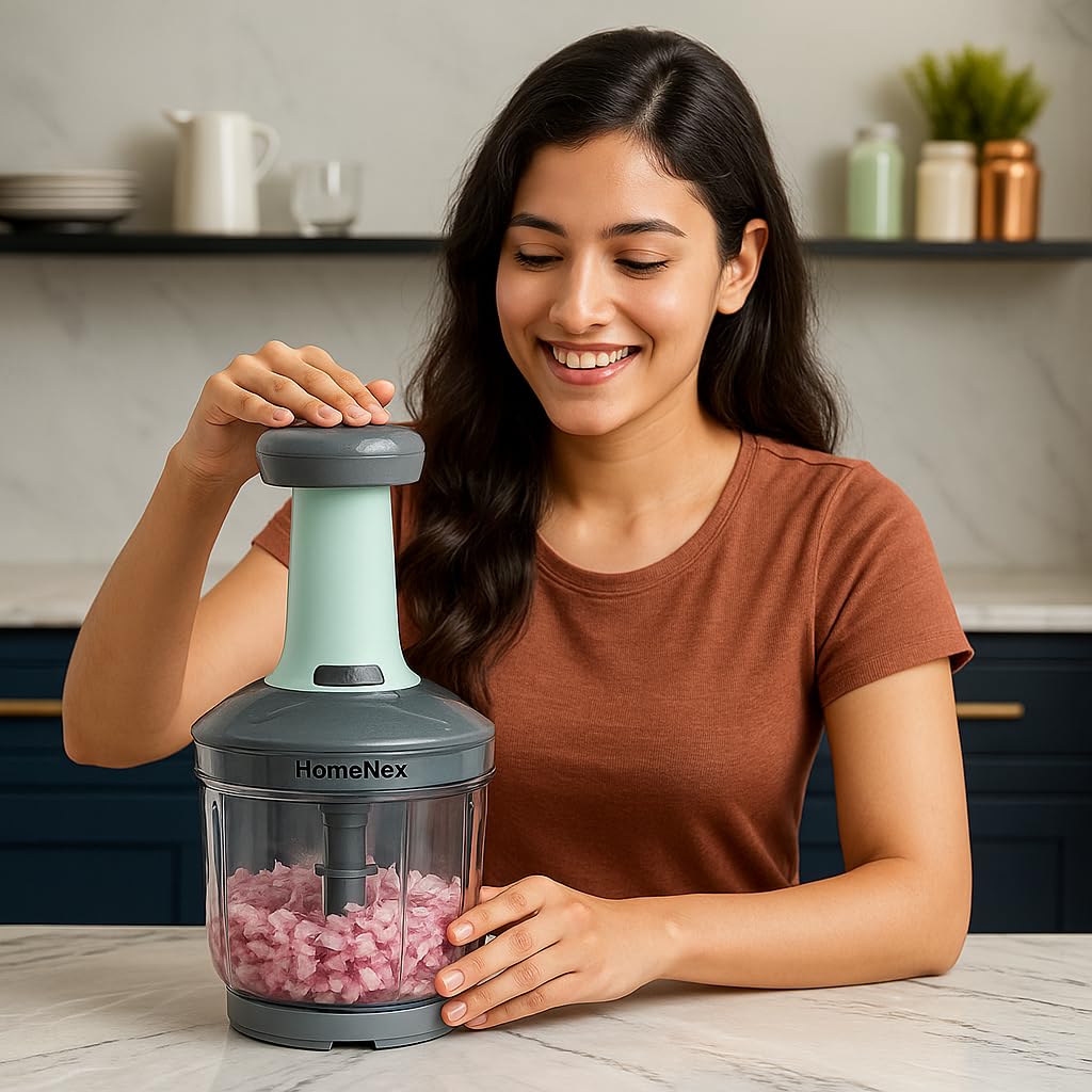 “Effortless one-push chopping with BPA-free materials, anti-slip base and razor-sharp stainless-steel blades. Perfect for vegetables, fruits and quick meal prep.”