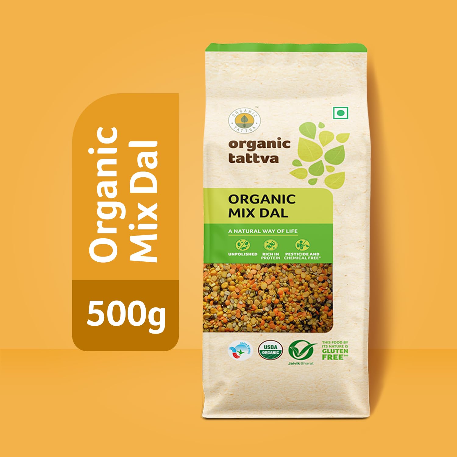 Organic Tattva Mix Dal 500g | Protein-Rich Indian Lentils, Tadka Dal Mix, Khichdi & Everyday Cooking | Blend of Toor, Moong, Masoor & Chana | Unpolished Pulses for a Healthy Pantry