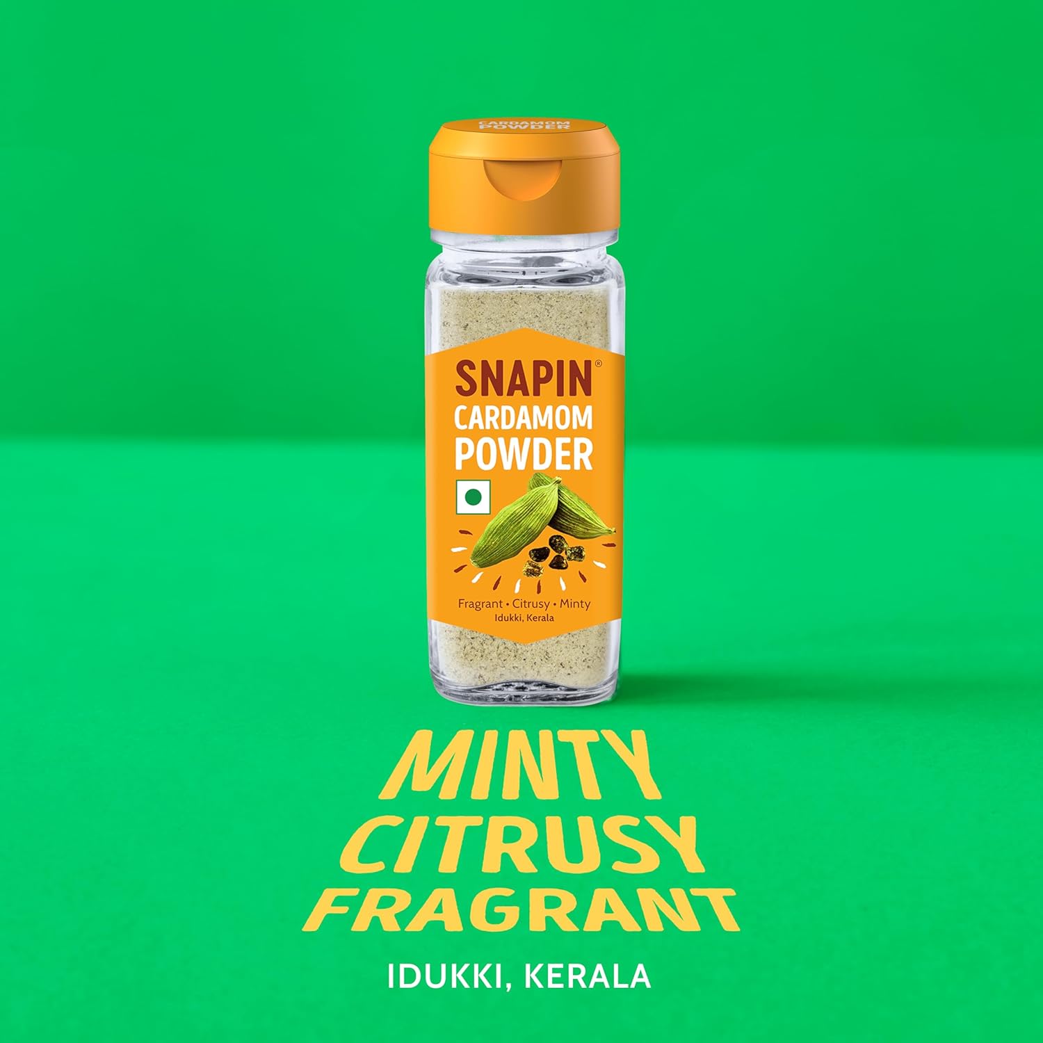 SNAPIN Cardamom Powder (Elaichi) | 45g Glass Bottle | Sourced from Idukki, Kerala | Rich Aroma & Fresh Flavour | For Chai, Mithai, Baking & Desserts.