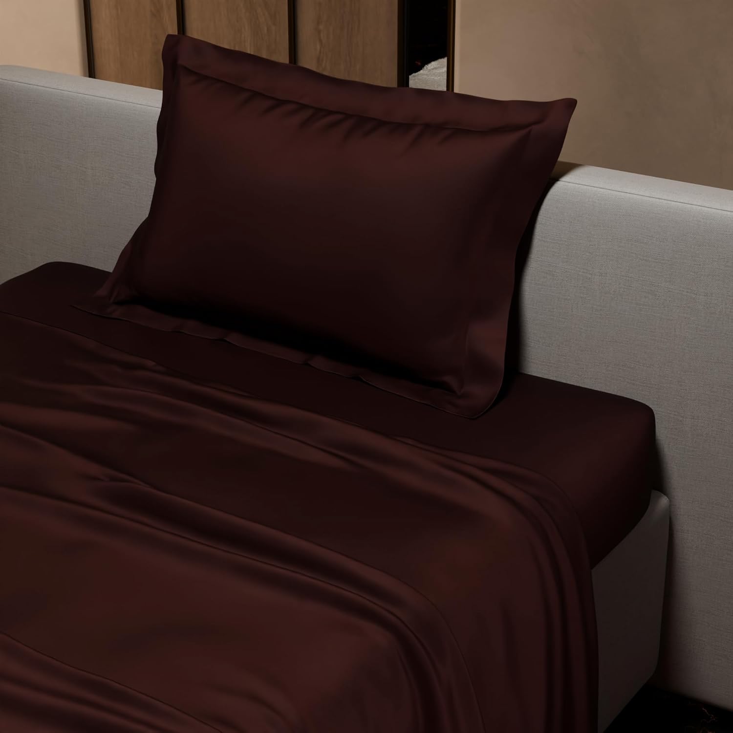 Elevate Your Bedroom Romance: Melt into the irresistible warmth of hot chocolate. This satin single bedsheet wraps your space in rich, cocoa-toned elegance, inviting slow evenings, soft conversations, and a luxurious intimacy that lingers long after the lights go out.