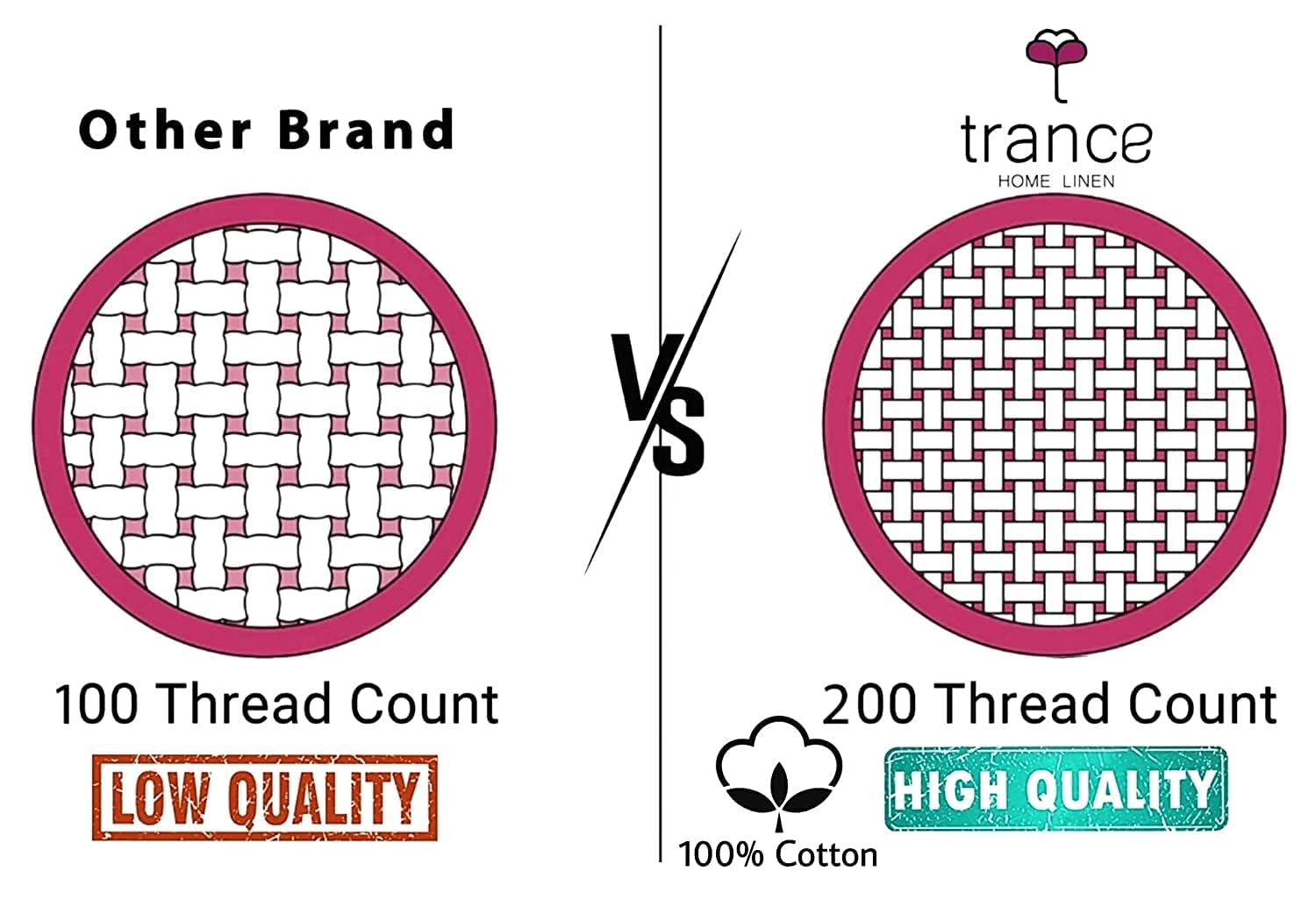 200 TC Thread Count with “Twill Weave Technology “, Twill Weave helps bedsheet to last long, durable and keeps the bedsheet fresh (non-fading) Our Mattress Cotton Bedsheet is made up of Rotary Print with 100% Cotton fabric, which is soft and Noiseless. Trance Bed Sheet Covers are 360 Degree draping to the mattress ad it has additional border which goes inside the mattress. Easy Insert and Removal.